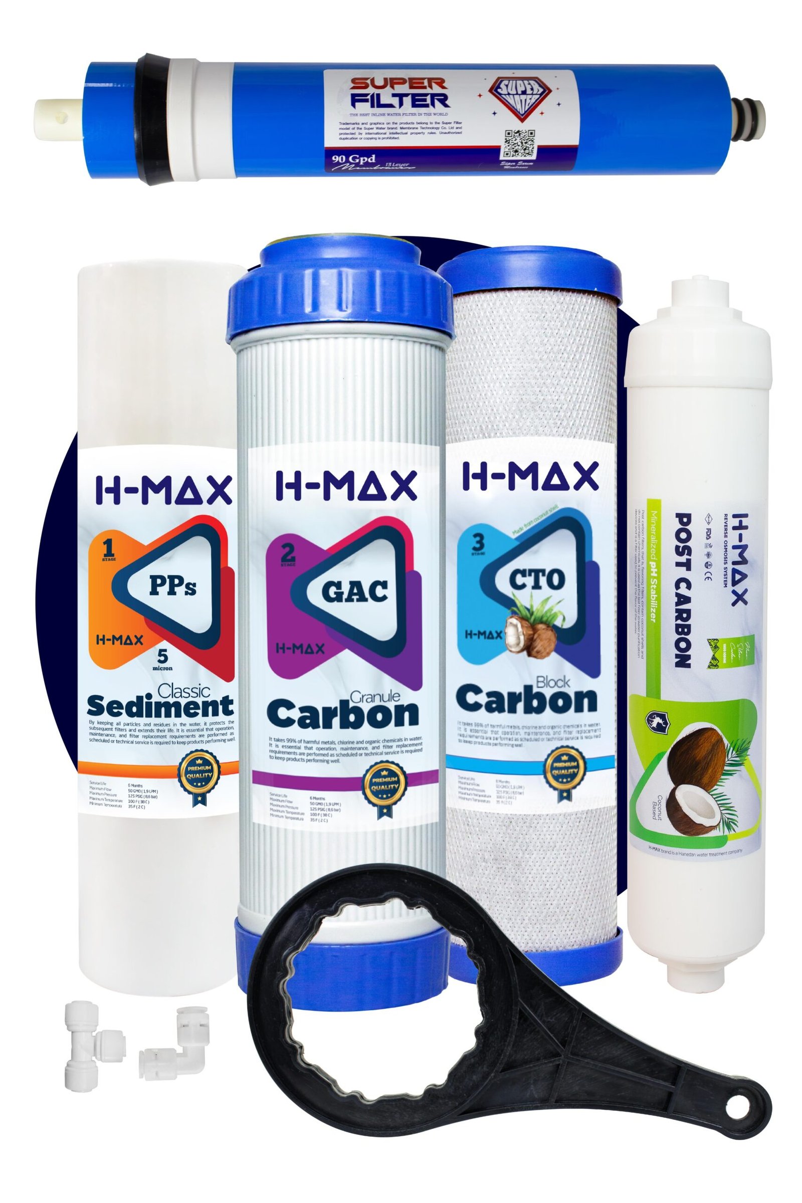 H-max 90 GPD Süper Membranlı Açık Kasa Su Arıtma Çift Karbonlu 5’li Filtre Seti – 0037