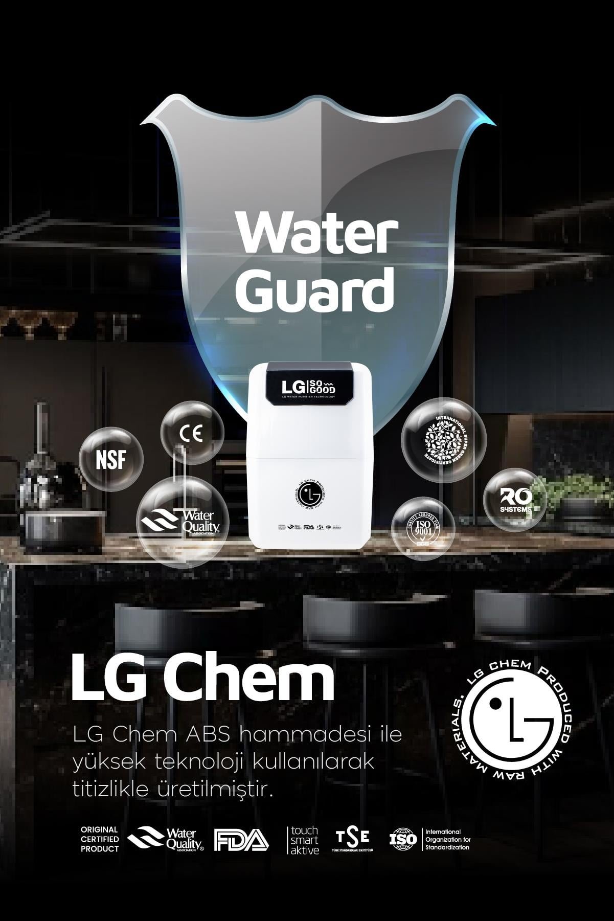 LG So Good, belediye arıtma proseslerinden geçmiş şebeke sularını evinizde içilebilir suya dönüştürmek için geliştirilmiş bir su arıtma sistemidir. Mikrobiyolojik olarak güvenli ve gerekli dezenfeksiyon işlemlerine tabi tutulmuş su, Lg So Good’un etkin ve verimli çalışması için önemlidir. Ayrıca, suyun belirli parametreler içinde olması, cihazın performansını en üst düzeye çıkarır.